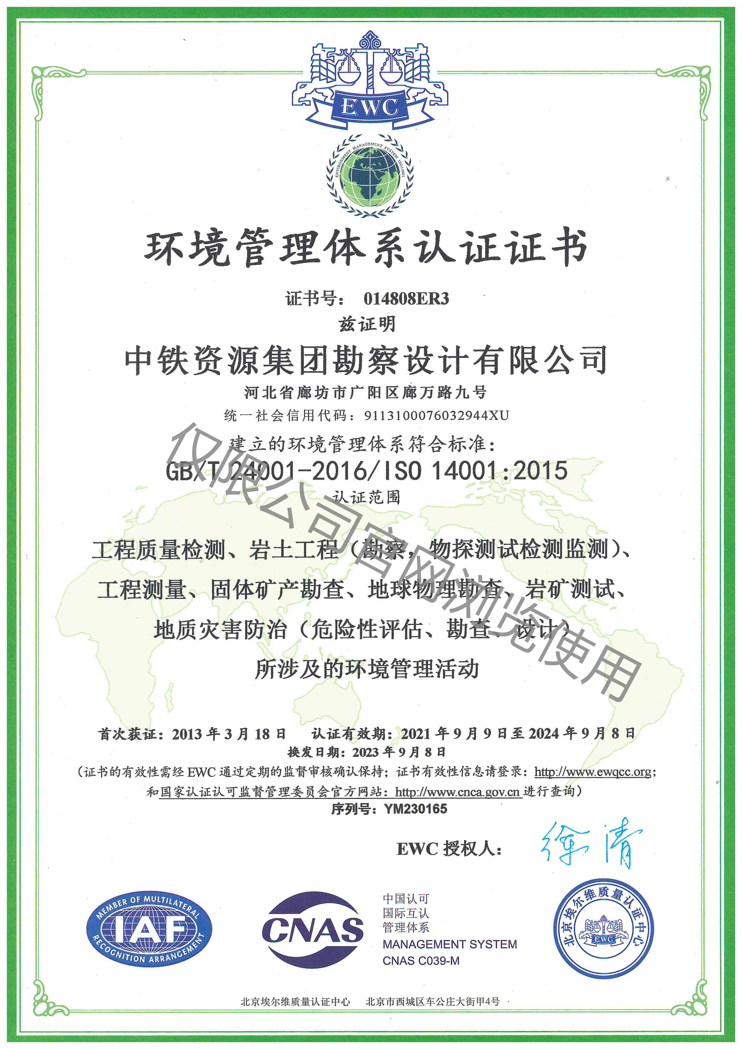 環(huán)境管理體系認(rèn)證證書